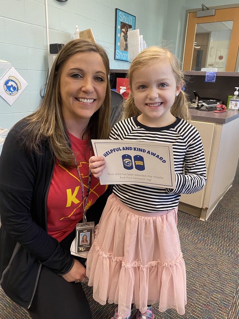 Kynzlee received the Helpful and Kind award from Mrs. Moser today! Thank you Kynzlee for helping your friend and for making Shull an awesome school!