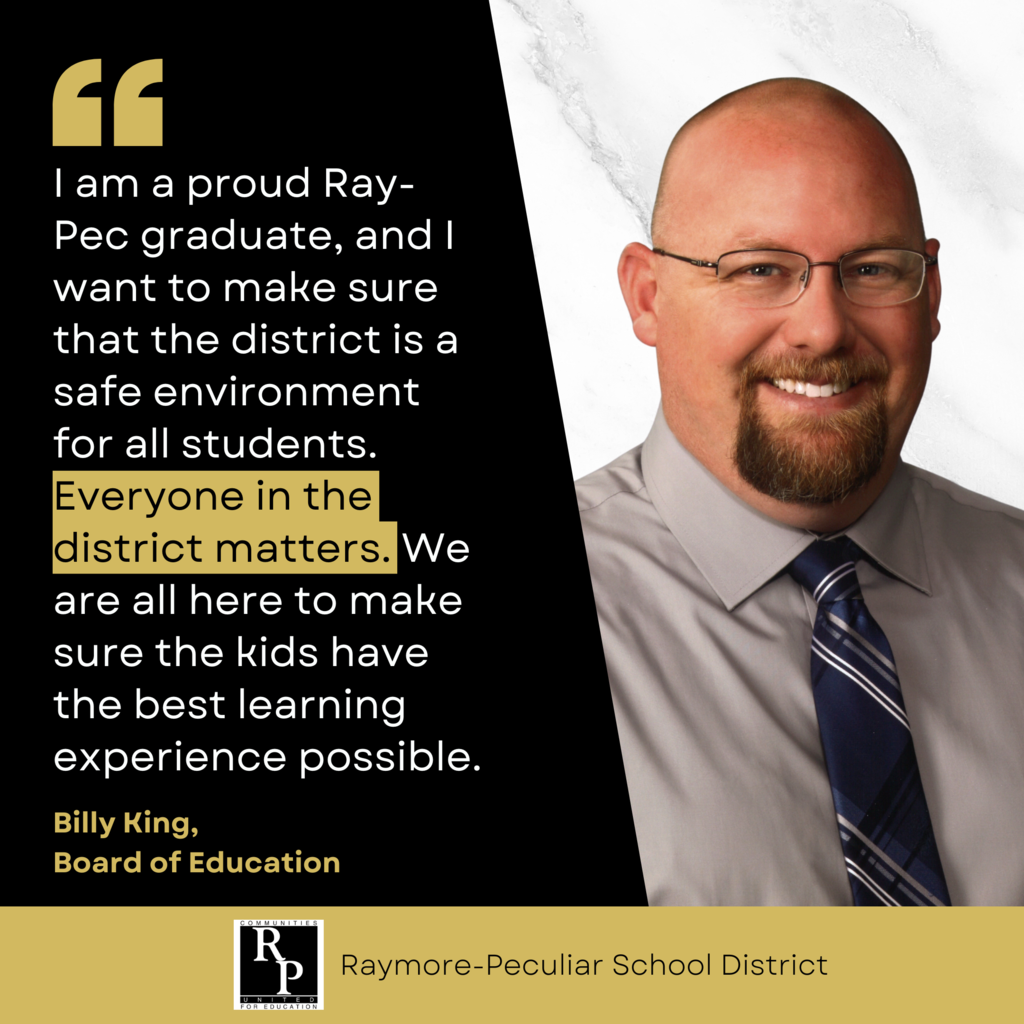 "I believe in the motto of service above self. The school board provides me the opportunity to serve the community of Raymore and Peculiar in an impactful way."
